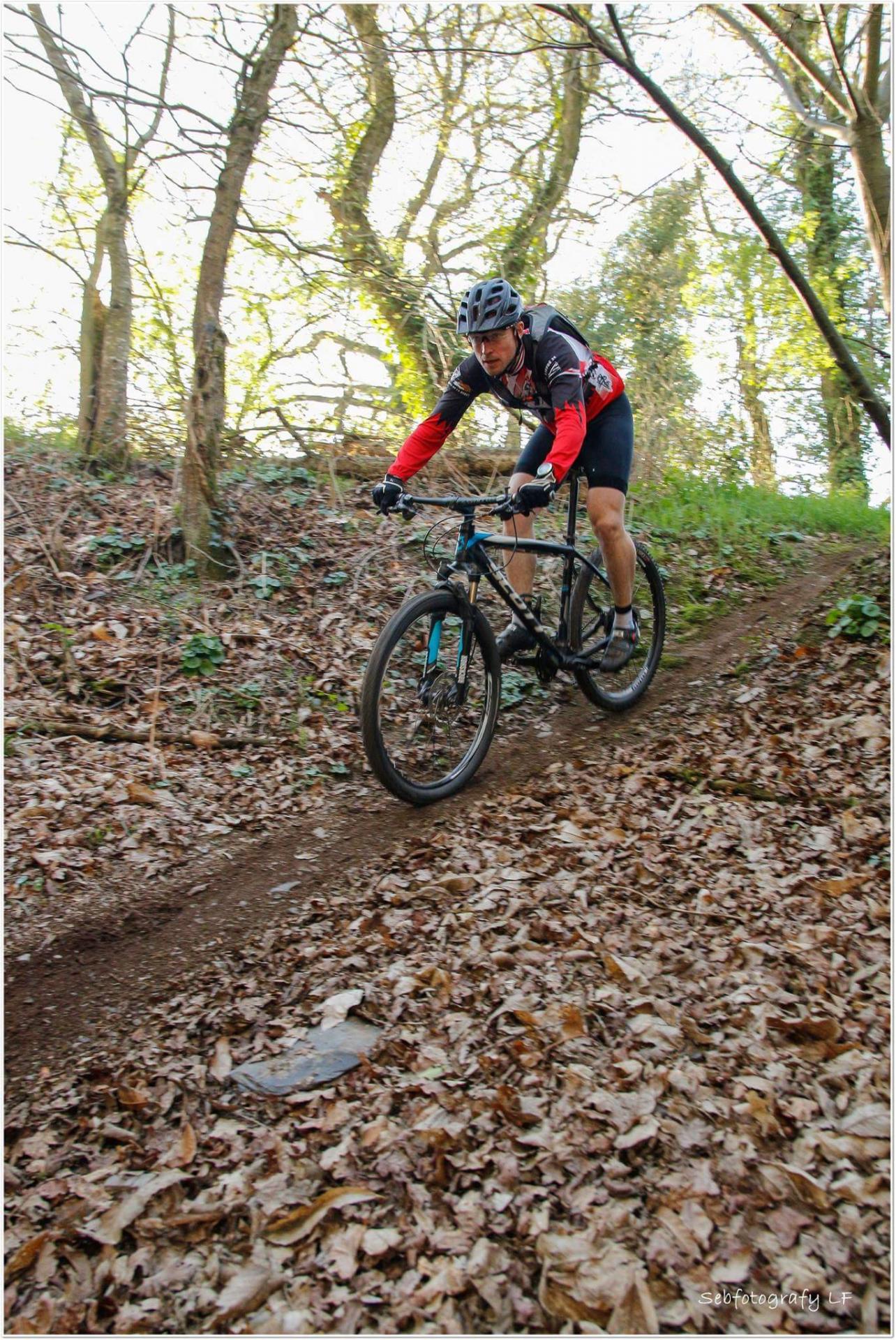 80% de forêt, de single track, de virages, ça tricote pas mal, des montés, quelques descentes mais pas de parties techniques ! Un terrain sec, agréable mais frustrant par manque d'adrénaline. Quand on a fait La chapelle de Brain on devient très vite exigeant