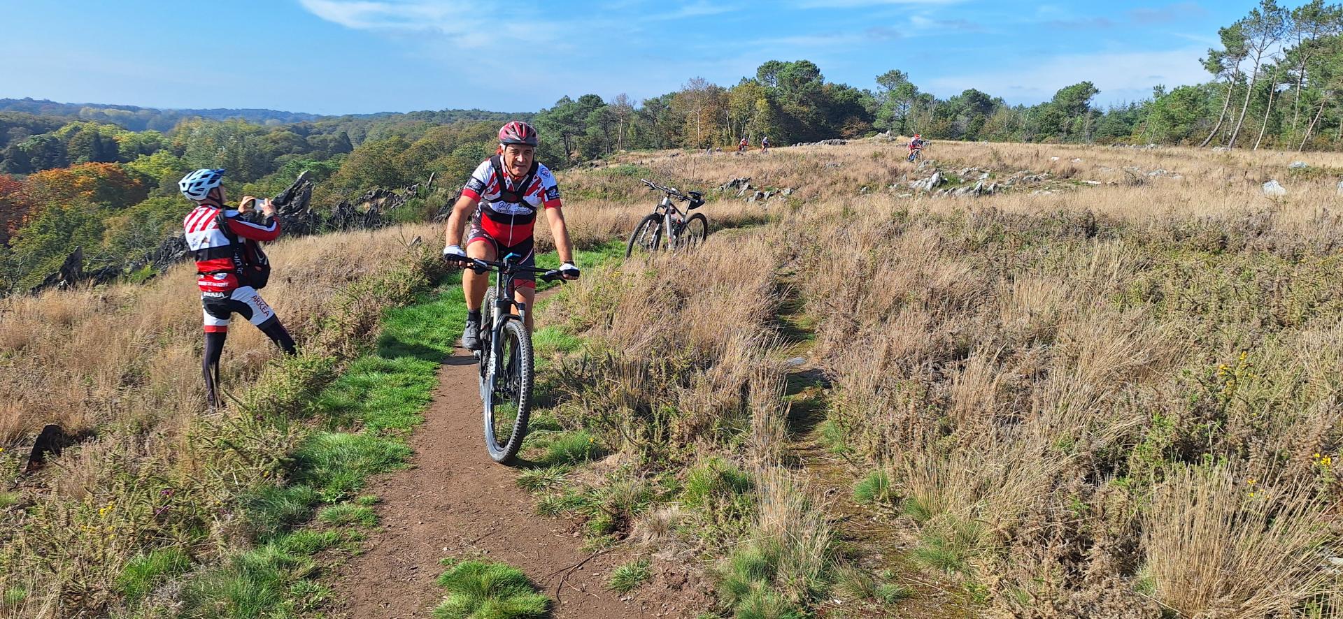 Les vététistes quittent le site en début d’après-midi pour une randonnée de 65 km vers le nord de Rochefort en Terre, à travers les landes et les vallées de cette belle région du centre du Morbihan. Le groupe se sépare par niveau après quelques kilomètres, afin de permettre à chacun de rouler à son allure.