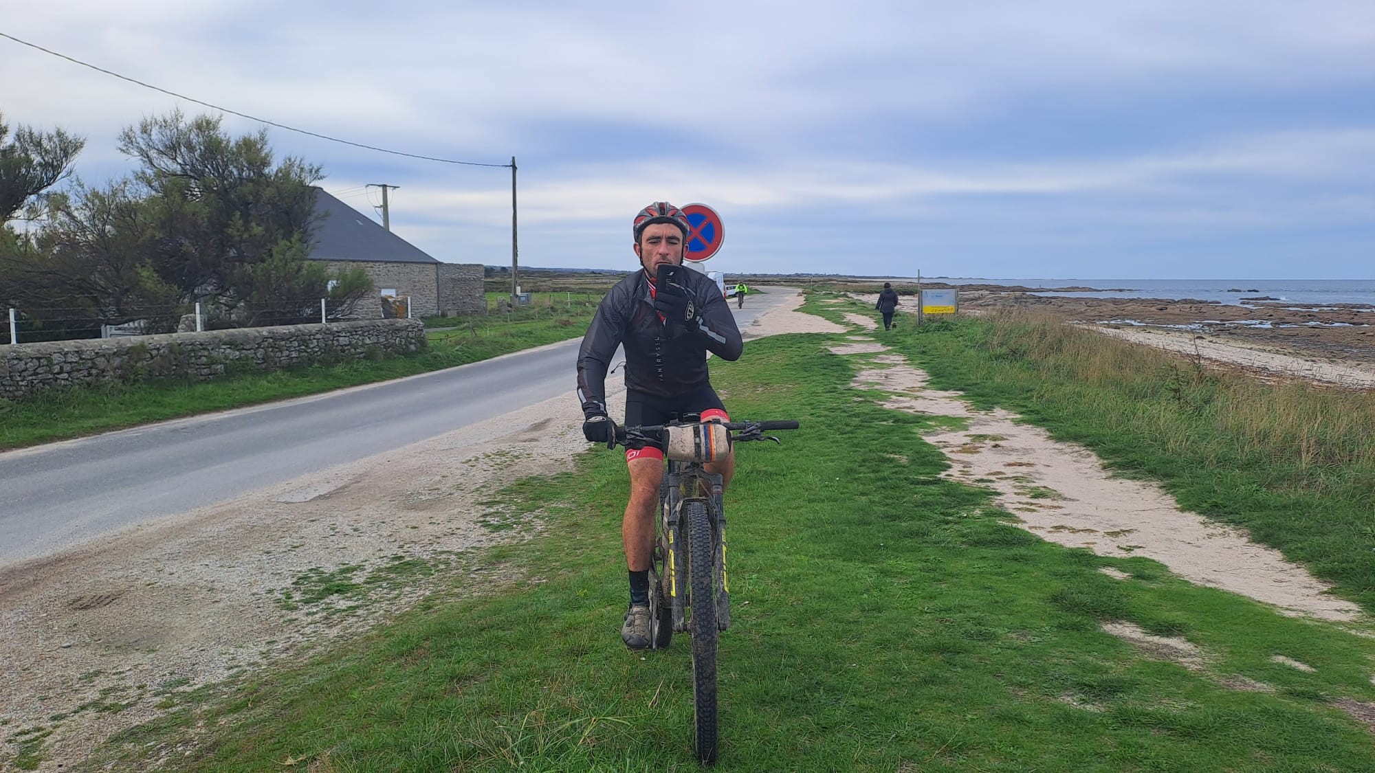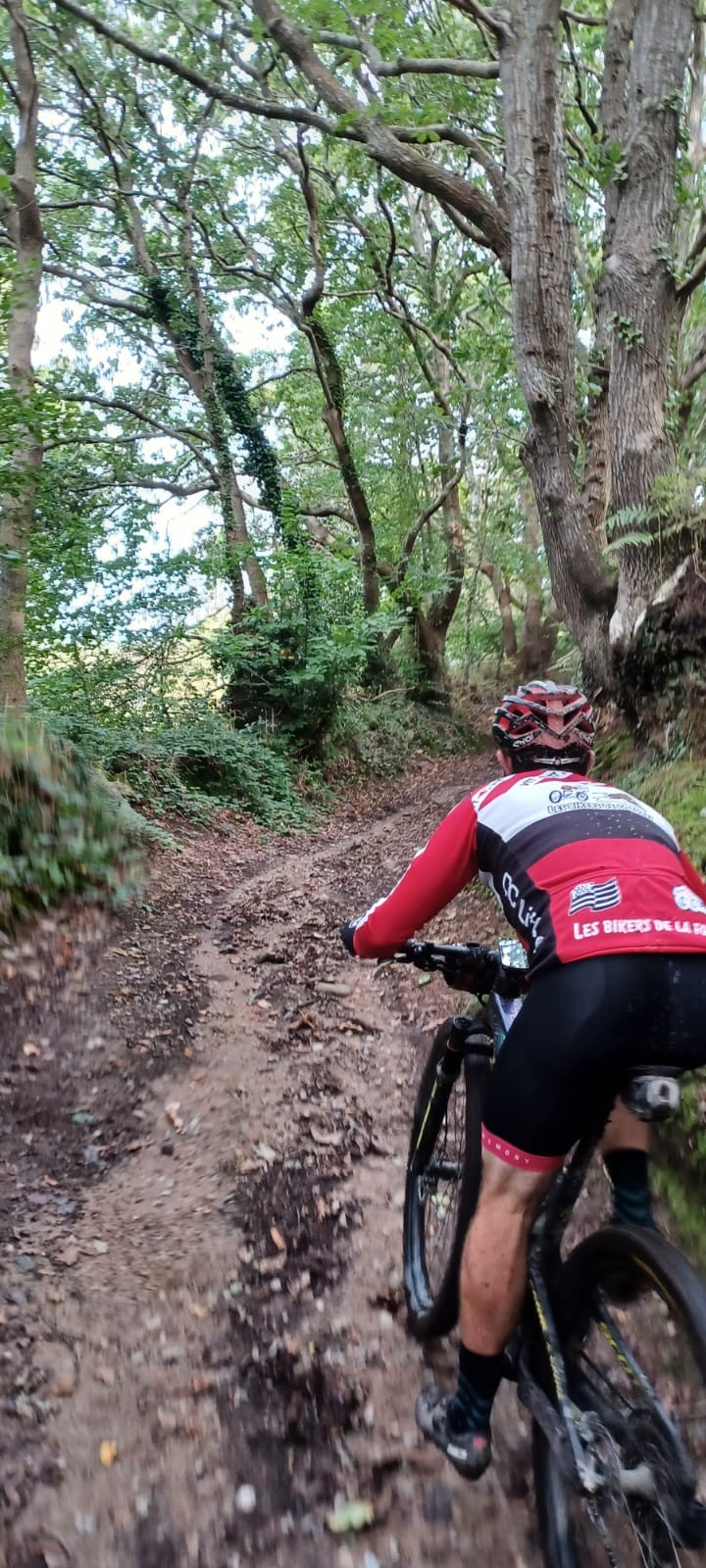 Après une matinée bien pluvieuse, le repas est pris à BIVILLE au km 45. Une fois le plein d'énergie fait, c'est reparti avec le passage au belvédère du Thot et une vue magnifique sur la réserve naturelle de la mare de Vauville. Et ça continue de monter ou de descendre !!! C'est là que nous faisons la rencontre bien opportune du responsable d'un club local de VTT qui nous alerte sur les difficultés à venir : montées impossibles et descentes dangereuses dans le secteur que nous devons traverser, nous corrigeons notre trace. A partir de Vauville en bord de mer, montée de 2,5 km pour atteindre le haut de la Lande du Catillon (+175), puis descente de la vallée Jalletot (+44), puis montée de la vallée Digard (+180). Tout va bien, il fait beau ! Le plus dur est fait, nous filons maintenant sur des chemins bocagers bien praticables et après le dernier point d'eau de Flottemanville-Hague au km 74, nous descendons vers Cherbourg pour rejoindre l'Auberge de Jeunesse. A notre arrivée, le GPS affiche 83 km / 1480 D+. Nous apprécions le côté pratique de l'endroit avec la possibilité de laver et garer nos vélos.